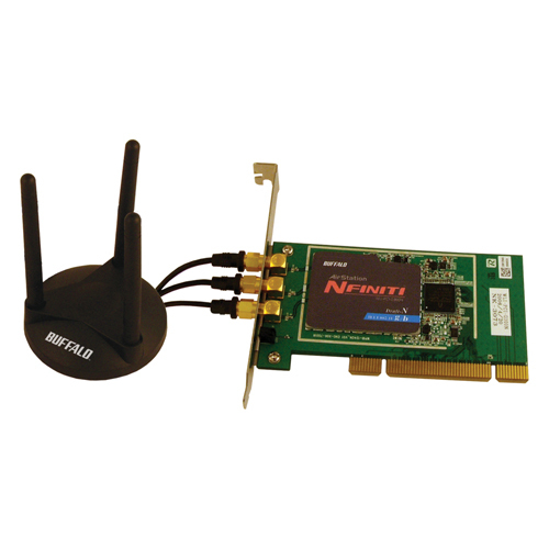 Der Buffalo Nfiniti Wireless-N PCI Adapter ist ausgelegt für das Streamen von High-Definition(HD)- Videos, Anrufen, Musik und Daten. Mit schnelleren drahtlosen Datenraten und besserer Flächenabdeckung als bisherige 802.11-Produkte verfügen die Buffalo Nfiniti Wireless-Produkte über reichlich Bandbreite, Reichweite und Zuverlässigkeit, um in jedem Raum Ihrer Umgebung Multimediadaten zur Verfügung zu stellen. Genießen Sie den Komfort der drahtlosen Hochgeschwindikeitsübertragung!
