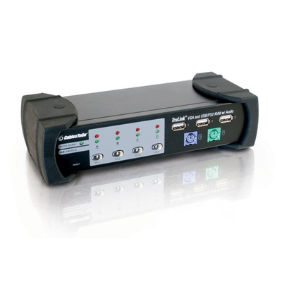 C2G Trulink 4-Port KVM Switch. Tastatur Porttyp: USB, PS/2, Maus Porttyp: USB, PS/2, Video Porttyp: VGA. Maximale Auflösung: 2048 x 1536 Pixel. Produktfarbe: Schwarz. Übertragungstechnik: Verkabelt, Abmessungen (BxTxH): 200 x 82 x 44 mm, Kompatible Betriebssysteme: Windows 98/98SE/ME/2000/XP/Vista, Mac OS9/X, Linux, Sun Micro