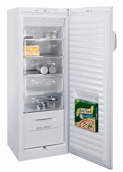 Candy CFN 2720. Bauform: Freistehend, Typ: Senkrecht, Produktfarbe: Weiß. Gefrierfach - Nettokapazität: 180 l, Gefrierfach - Bruttokapazität: 225 l, Gefriervermögen: 28 kg/24h. Energie-Effizienzklasse: A, Jährlicher Energieverbrauch: 270,1 kWh, Energieverbrauch: 0,74 kWh/24h. Breite: 600 mm, Tiefe: 620 mm, Höhe: 1630 mm