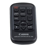 Canon WL-D89 . Schnittstelle: IR Wireless, Produktfarbe: Schwarz, Fernbedienung Nutzung: Digitalkamera. Eingangssignal: Drucktasten. Akku-/Batterietyp: CR2025