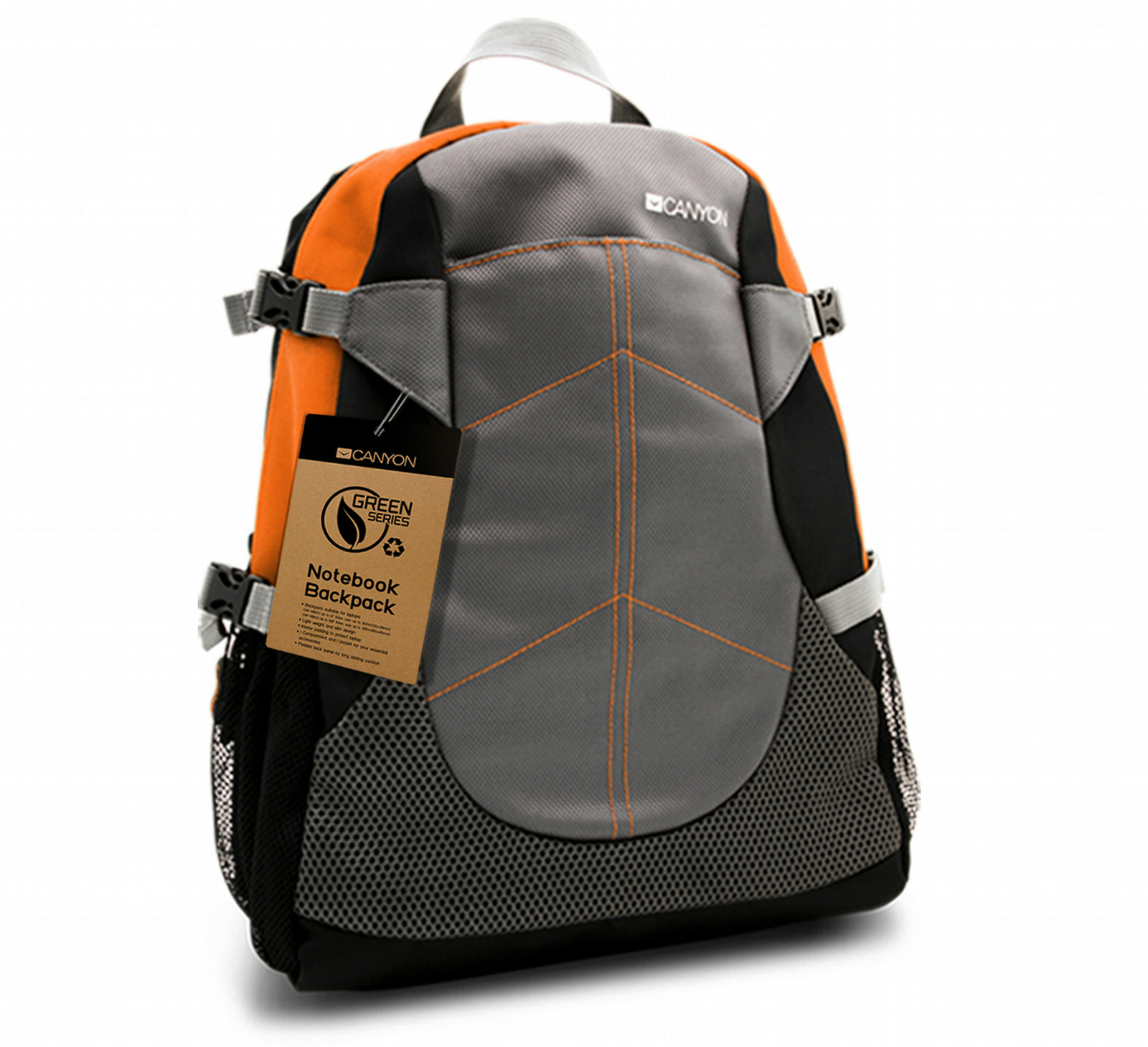 Canyon CNF-NB03O. Maximaler Bildschirmdurchmesser: 30,5 cm (12 Zoll), Art der Tasche: Rucksack, Produktfarbe: Schwarz, Grau, Orange. Breite: 285 mm, Tiefe: 150 mm, Höhe: 375 mm