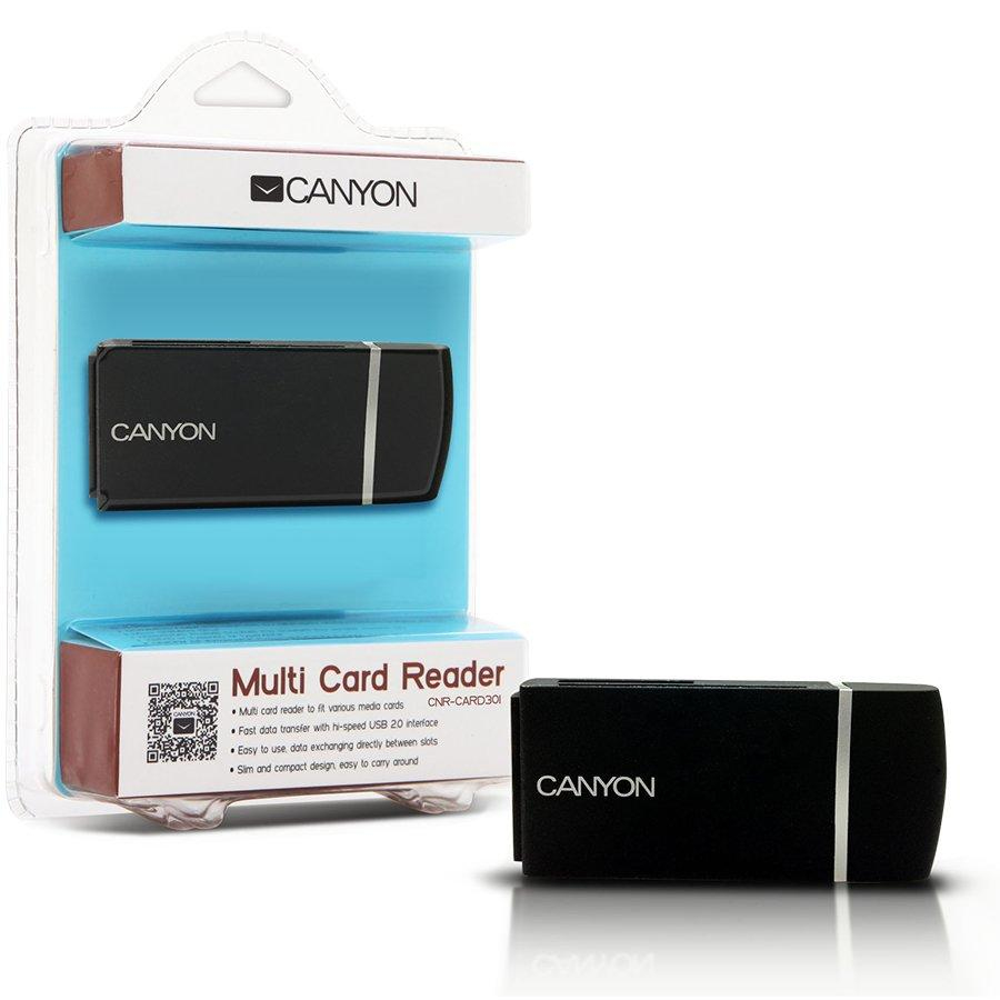 Canyon CNR-CARD301. Kompatible Speicherkarten: CF, microSD (TransFlash), MMC, SD. Schnittstelle: USB 3.0. Produktfarbe: Schwarz. Verpackungsart: Sichtverpackung