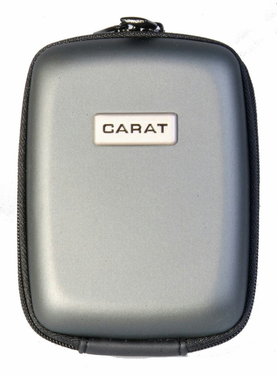 Druckfestes, wasserabweisendes Hartschalen-Etui mit Gürtelschlaufe, Trageriemen und Metall-Karabinerhaken