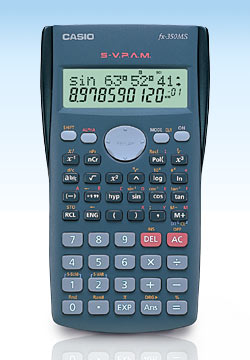 FX-350MS - großes 2-Zeilen-Display in Tischrechnergröße, komfortable Menüführung für statistische Berechnungen, 240 integrierte Funktionen, SCI/FIX/ENG-Funktion, zweidimensionale Statistik mit Mittelwert-, Schätzwert- und Summen-Berechnung,mit Hardcase