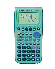 Casio GRAPH 25+. Formfaktor: Desktop, Typ: Graphing calculator, Produktfarbe: Blau. Kontrolltyp: Knöpfe. Interne ROM: 0,024 MB. Energiequelle: Batterie/Akku, Akku-/Batterietyp: AAA, DL2032. Breite: 82 mm, Tiefe: 163 mm, Höhe: 19 mm