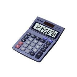 Casio MS-80VER. Formfaktor: Desktop, Typ: Basic calculator, Produktfarbe: Schwarz, Blau, Grau. Akku-/Batterietyp: LR44, Batterietechnologie: Alkali. Gewicht: 117 g, Abmessungen (BxTxH): 103 x 137 x 31 mm