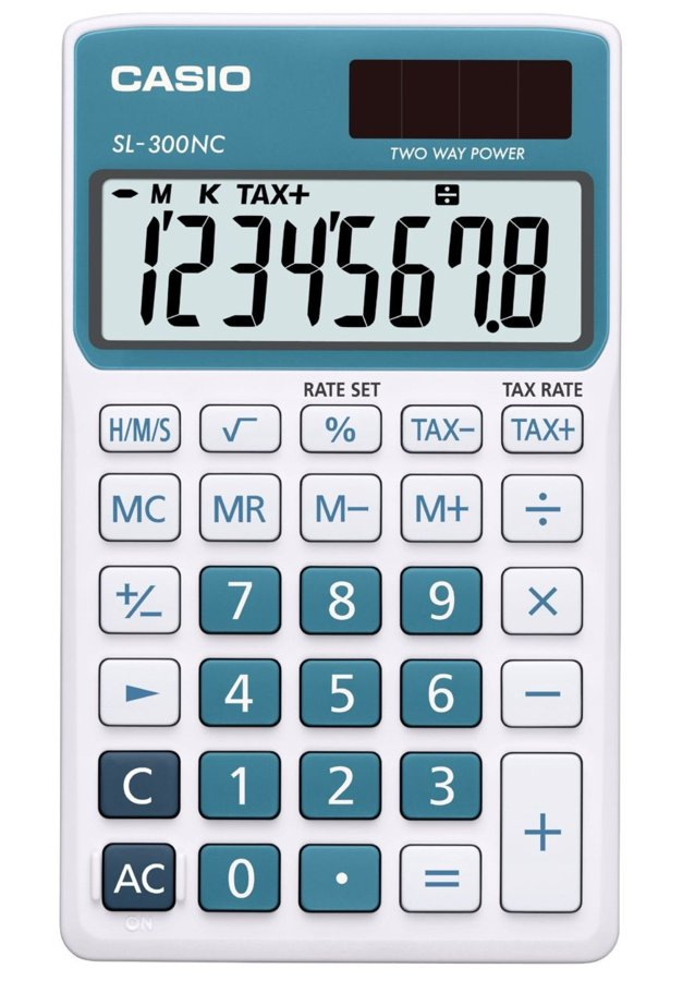 Casio SL-300NC. Formfaktor: Tasche, Typ: Display calculator, Produktfarbe: Orange. Kontrolltyp: Knöpfe. Speichermedien Typ: Not available. Energiequelle: Batterie/Solar, Akku-/Batterietyp: LR54. Breite: 70 mm, Tiefe: 118,5 mm, Höhe: 8 mm