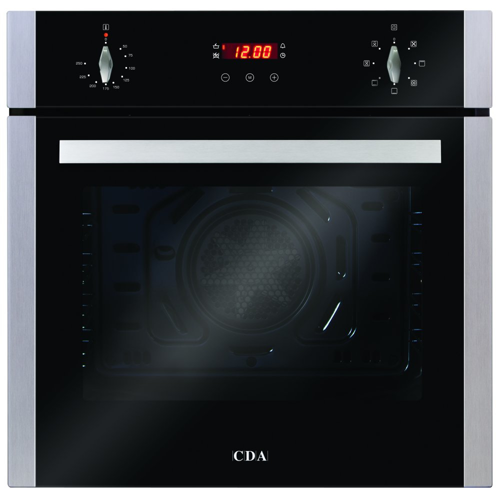 CDA SC612. Ofengröße: Medium, Ofentyp: Electric oven, Gesamtes Fassungsvermögen Garraum Ofen: 56 l. Produktfarbe: Edelstahl, Kontrolltyp: Rotation, Berührung, Kontrollposition: Vorderseite. Timer-Typ: Digital. Energie-Effizienzklasse: A, AC Eingangsspannung: 230-240 V, AC Eingangsfrequenz: 50 Hz. Breite: 595 mm, Tiefe: 563,5 mm, Höhe: 595 mm
