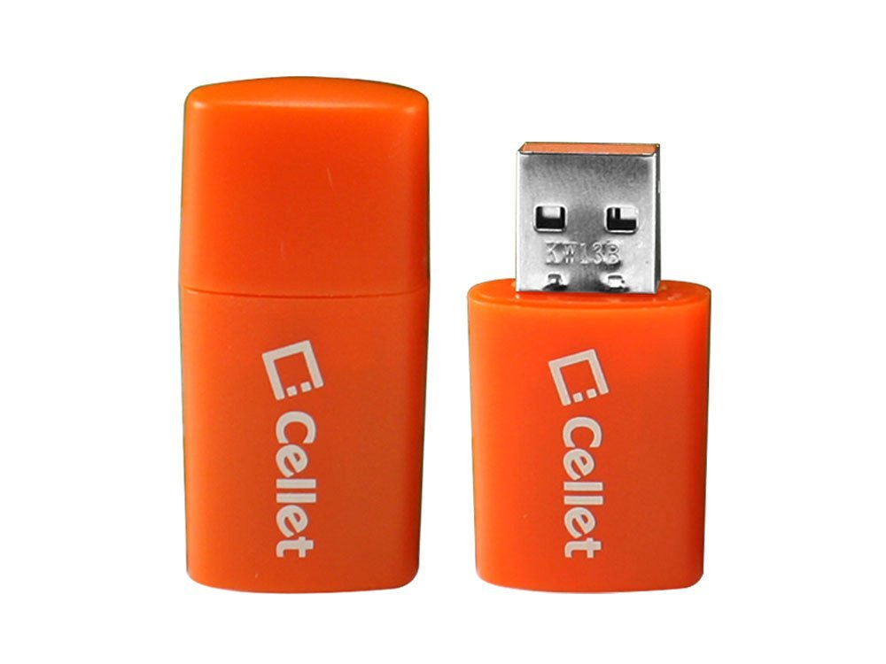 Cellet microSD USB 2.0 Memory Card Reader - Orange. USB-Version: USB 2.0, USB-Anschluss: Type-A, Kartenleser: microSD. Formfaktor: Kappe, Produktfarbe: Orange