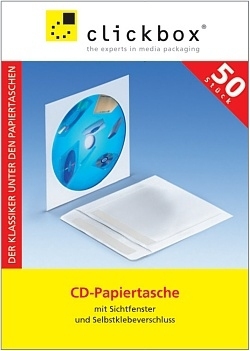 - Die klassische weiße CD-Papiertasche mit Sichtfenster. - Klappe mit Haftklebung. - Fenster: Ø 110 mm, mit Fensterfolie, selbstklebende Klappe. - Aus Offsetpapier weiß 90 g/qm. - Größe: 125 x 125 mm + 25 mm-Klappe.