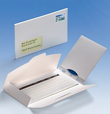 - Praktisch: Die Brief-Adresse erscheint passgenau in der Fensterausstanzung
