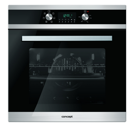 Concept ETV-6360. Ofentyp: Electric oven, Gesamtes Fassungsvermögen Garraum Ofen: 66 l, Insgesamt Backofen Leistung: 2550 W. Produktfarbe: Schwarz, Edelstahl, Kontrolltyp: Rotation, Integrierte Uhr: Elektronisch. Timer-Typ: Digital. Energie-Effizienzklasse: A, AC Eingangsspannung: 230 V, AC Eingangsfrequenz: 50 Hz. Breite: 595 mm, Tiefe: 585 mm, Höhe: 590 mm