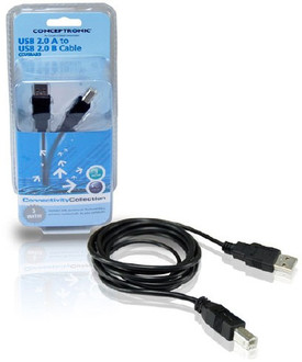 Conceptronic 3m USB2.0 A - B. Anschluss 1: USB A, Anschluss 2: USB B, Geschlecht: Männlich/männlich. Verpackungsart: Sichtverpackung. Abmessungen (BxTxH): 3 x 3 x 3000 mm, USB-Stecker: USB Type-A, USB Type-B