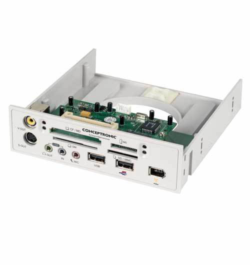 Dieses interne Multifunktions-Frontpanel erlaubt ihnen, leicht alle notwendigen Zusatzgeräte frontal an den PC anzuschließen, wie z.b. Drucker, Scanner, Mikrofon, Lautsprecher, Foto- und Videokamera, Keyboard etc. Keine weiteren Zusatzgeräte, wie ein Hub oder ein Kartenleser, sind nötig. Das Panel wird mit Blenden in vier verschiedenen Farben geliefert, sodass es zu der Farbe jedes Computers passt.