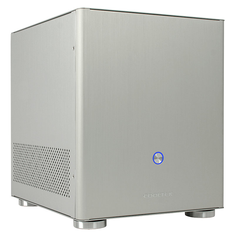 Auch der Coolcube Maxi überzeugt durch sein minimalistisches Design und ist komplett aus 1,5 mm starkem, schwarz eloxierten Aluminium gefertigt. Der Power-Button sitzt zentral im unteren Bereich der Gehäuse-Front. Der Coolcube Maxi bietet so dem Anwender ein zeitlos edles Design, das perfekt mit jeder Umgebung harmoniert. Das Gehäuse ist für Micro-ATX Systeme ausgelegt und kann mit einem Standard-ATX Netzteil ausgerüstet werden.