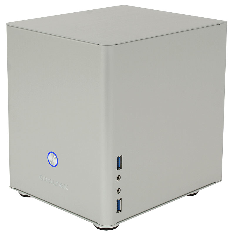 Auch der Coolcube Mini überzeugt durch sein minimalistisches Design und ist komplett aus 1,5 mm starkem, silber eloxierten Aluminium gefertigt. Der Power-Button sitzt zentral im unteren Bereich der Gehäuse-Front. Der Coolcube Maxi bietet so dem Anwender ein zeitlos edles Design, das perfekt mit jeder Umgebung harmoniert. Das Gehäuse ist für Mini-ITX Systeme ausgelegt und kann mit einem Standard-SFX Netzteil ausgerüstet werden. Eine Adapterblende für externe Netzteile ist im Lieferumfang enthalten.