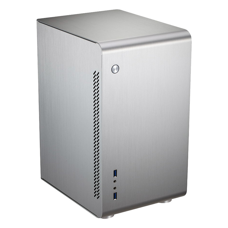 Der blau beleuchtete Power-Button ist ebenso in die schnörkellose Front eingelassen wie das I/O-Panel mit 2 x USB 3.0 und den obligatorischen HD-Audio Anschlüssen. Der Rahmen des „U3“ ist aus 2,0 mm starkem, eloxierten Aluminium gefertigt, Seitenteile und Rückwand sind jeweils 1,5 mm stark. Zwei Farbvarianten - Schwarz und Silber - sind verfügbar.