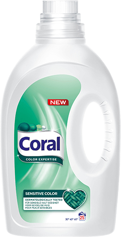 Menschen mit sensibler Haut brauchen ein Waschmittel, das mild zur Haut ist. Coral Sensitive Color reinigt sanft und sorgt für strahlende Farben. Dank seines milden Parfüms und der Formulierung ist es dabei für sensible Haut geeignet. Dermatologisch getestet.