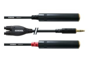 Cordial CFY 0.3 WGG. Anschluss 1: 3.5mm, Anschluss 2: 2x 6.3mm, Geschlecht: Männlich/weiblich. Produktfarbe: Schwarz, Kabellänge: 0,3 m