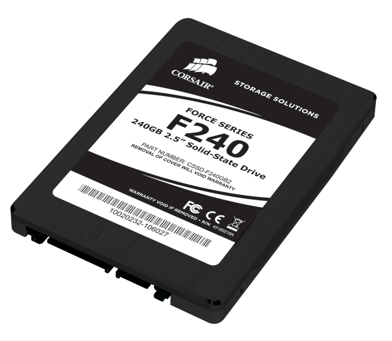 Corsair 240GB Force SSD. SSD Speicherkapazität: 240 GB, SolidStateDrive (SSD) Schnittstelle: Serial ATA II, Lesegeschwindigkeit: 285 MB/s. SSD-Formfaktor: 2.5", Produktfarbe: Schwarz. Breite: 181,1 mm, Tiefe: 165,1 mm, Höhe: 127 mm