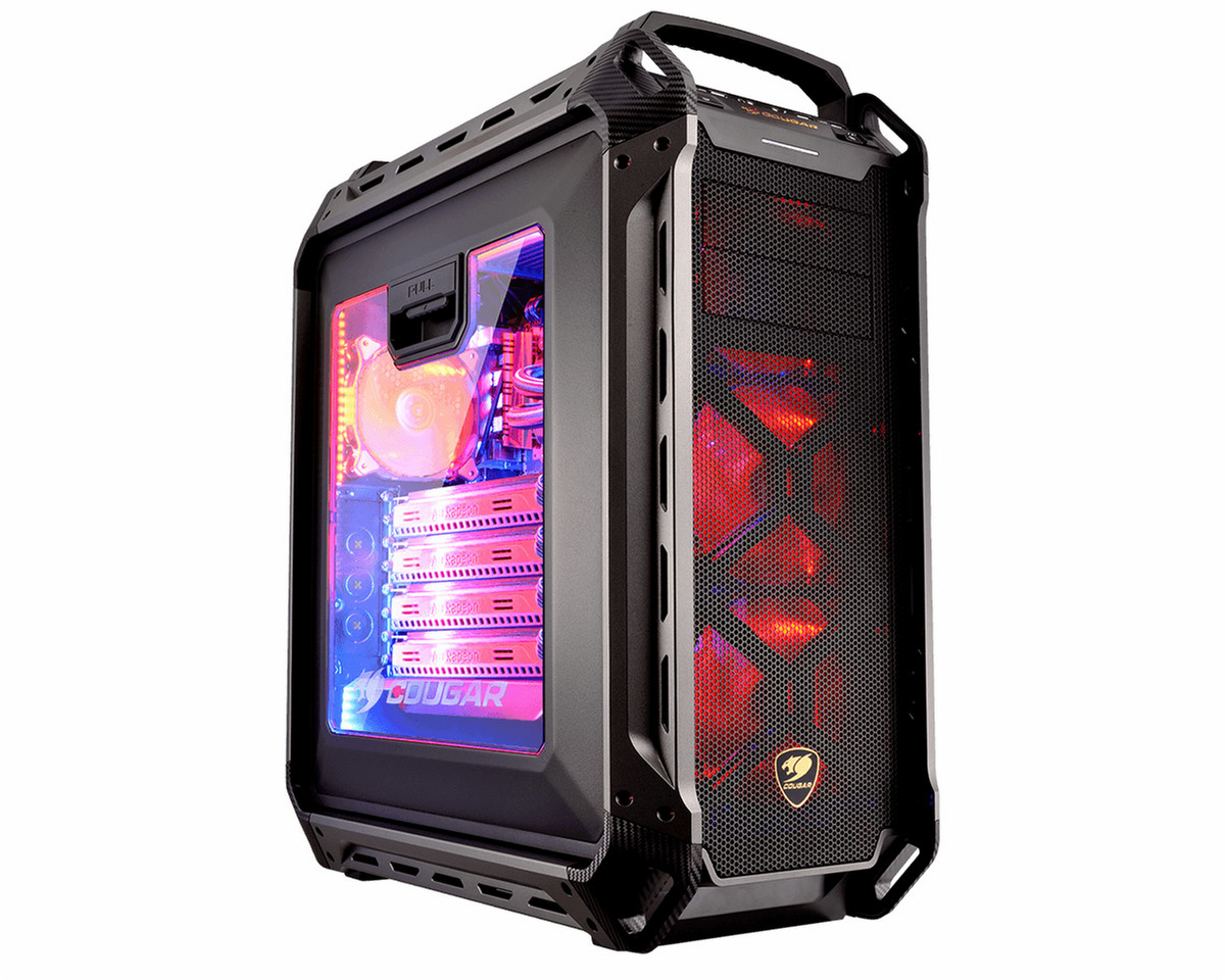 Cougar Panzer MAX. Formfaktor: Full-Tower, Typ: PC, Unterstützte Motherboards Formfaktoren: ATX,CEB,EATX,Micro-ATX,Mini-ITX. Energielieferung Platzierung: Boden. Unterstützte Lüfter Durchmesser vorne: 120,140 mm, Unterstützte Lüfter Durchmesser oben: 120,140 mm, Unterstützte Unterlüfter Durchmesser: 120,140 mm. Unterstützte Hard-Disk Drive Größen: 2.5,3.5 Zoll. Breite: 266 mm, Tiefe: 556 mm, Höhe: 612 mm