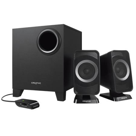 Genießen Sie Ihre Musik kabellos mit dem T3150 Wireless, jetzt mit integrierter Bluetooth-Technologie. Das T3150 Wireless ist mit den meisten Mobiltelefonen und Laptops mit Bluetooth-Stereo-Profilen kompatibel und bietet bei Nutzung Ihrer Kabelverbindung noch zusätzliche Anschlussmöglichkeiten. Die integrierte Creative IFP-Technologie (Image Focusing Plate, engl. für Abbildungszentrierungsplatte) der T3150 Wireless-Satellitenlautsprecher ermöglicht eine optimale akustische Abbildung für einen großen Raumbereich und leitet den Klang gezielt in den Hörbereich, so dass Musik präziser und unverfälscht erklingt, während der speziell gestimmte Subwoofer mit Bodenbeschallung für förmlich spürbare Bässe sorgt. Zum Lieferumfang des T3150 Wireless gehört außerdem eine Kabelfernbedienung, mit der Sie die Lautsprecher bequem ein- und ausschalten und die Lautstärke regeln können.