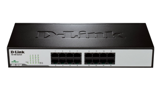 D-Link DES-1016D. Switch-Typ: Unmanaged network switch. Basic Switching RJ-45 Ethernet Ports-Typ: Fast Ethernet (10/100), Kupfer Ethernet Verkabelungstechnologie: 100BASE-TX,10BASE-T. Netzstandard: IEEE 802.3,IEEE 802.3az,IEEE 802.3u,IEEE 802.3x. MAC-Adressentabelle: 8000 Eintragungen, Routing-/Switching-Kapazität: 3,2 Gbit/s, Max. Datenübertragungsrate: 0,2 Gbit/s. Unterstützte Netzwerkprotokolle: CSMA/CD