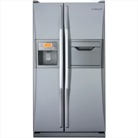 Daewoo FRS-2011IAL Side-by-Side Refrigerator. Bauform: Freistehend, Produktfarbe: Aluminium, Eingebaute Anzeige: LCD. Geräuschpegel: 38 dB. Kühlschrank - Bruttokapazität: 339 l. Gefrierfach - Bruttokapazität: 174 l. Breite: 795 mm, Tiefe: 928 mm, Höhe: 1808 mm