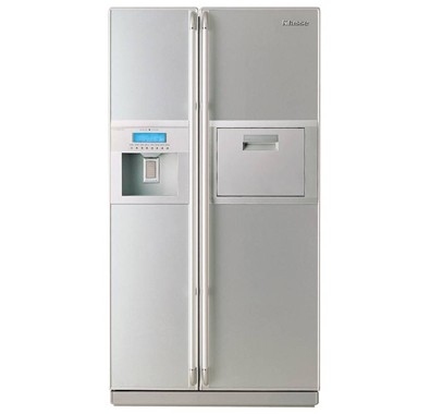 Daewoo FRS-T20FAS Side-by-Side Refrigerator. Bauform: Freistehend, Produktfarbe: Silber, Kühlendes Medien: Cyclopentane. Geräuschpegel: 43 dB. Kühlschrank - Bruttokapazität: 365 l. Gefrierfach - Bruttokapazität: 190 l. Breite: 942 mm, Tiefe: 803 mm, Höhe: 1812 mm