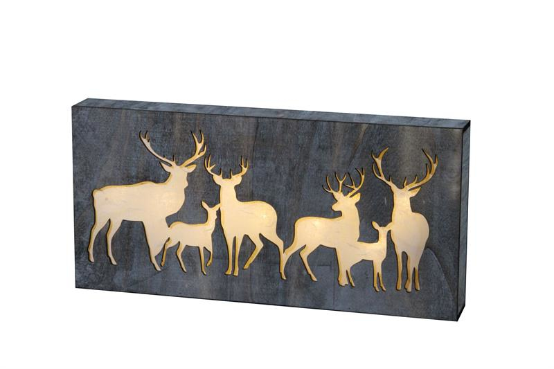 Holz-Bild mit Hirschen, 20x LED, 56x27cm