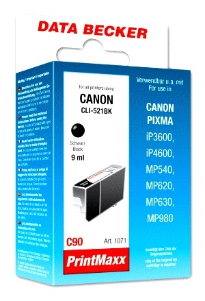 Ab sofort wird der Ausdruck zu Hause nicht mehr zur Kostenfalle: Die Markentinte der neuen C90-Patrone von DATA BECKER garantiert brillante Ausdrucke in bester Premiumqualität, und das bei einer Preisersparnis von über 40% im Vergleich zur Originalpatrone Canon CLI-521.
