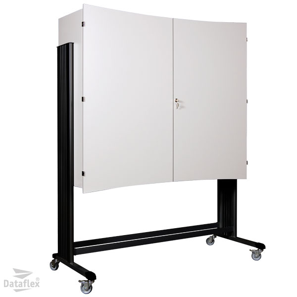 Diesen mobilen AV-Centers sind geïgnet für TV's bis zum 45"Zoll Zoll/114cm. Die Türen sind unter 270° zu öffnen und im geschlossenen Zustand mittels Zylinderschloß abschließbar. Die vier Laufrollen (zwei sind arretierbar) haben eine Antirutsch-Lauffläche. Ventilationsöffnungen sind an der Oberseite der Rückwand.