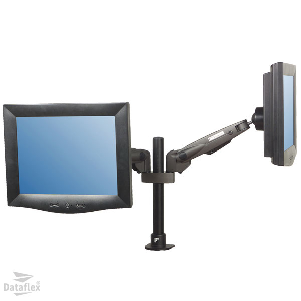Geeignet für gegenüberliegende Arbeitsplätze. Eine ideale Lösung, die nicht mehr Platz einnimmt als absolut nötig, aber keine Einbuße der Effektivität zur Folge hat. Auch einsetzbar für Anwender, die mit zwei Bildschirmen arbeiten.