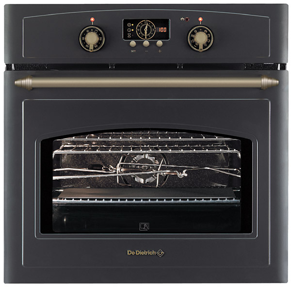 De Dietrich DOP755E. Ofentyp: Electric oven, Gesamtes Fassungsvermögen Garraum Ofen: 53 l. Produktfarbe: Schwarz, Kontrolltyp: Rotation. Timer-Typ: Mechanisch. AC Eingangsfrequenz: 50/60 Hz, Lampenleistung: 25 W, Leistung: 2600 W. Breite: 560 mm, Tiefe: 550 mm, Höhe: 585 mm