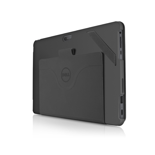 Genießen Sie Ihre Arbeit in verschiedenen Betrachtungswinkeln mit dem drehbaren Folio von Dell. Klappen Sie einfach den Ständer aus und schieben Sie ihn in den Winkel, der gerade passend ist, damit Sie bei der Hoch- oder Querformatanzeige die Hände frei haben. Die hintere Docking-Station lässt sich abnehmen, damit Sie bequem Ihre mobile Dell Tastatur anschließen können, für einen perfekten mobilen Arbeitsplatz auch unterwegs.