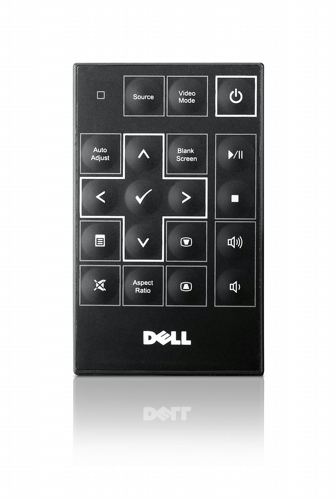Mit dieser eleganten und modernen Fernbedienung von Dell™ können Sie den Dell-Projektor von jedem beliebigen Punkt im Raum steuern. So können Sie Ihre Präsentation betreuen, ohne neben Ihrem Projektor zu stehen. Sie besitzt Tasten für Funktionen wie Einschalten, Menü, Lautstärke, Keystone-Korrektur und Video-Modi. Dieses Produkt wurde für den Betrieb mit dem Dell-Projektor getestet und validiert. Für das Produkt ist der technische Support von Dell verfügbar, falls es in einem Dell Projektor eingesetzt wird.