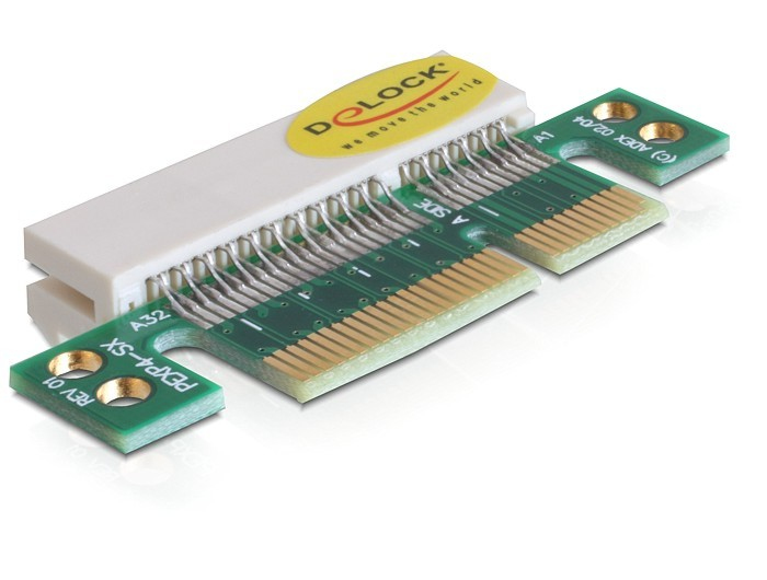 Die PCI Express Extension Riser Karte von Delock dient zu Verlängerung einer x4 PCI Express Card, in dem Sie die Riser Karte zum einen auf das Mainboard und Ihre PCI Express Karte an die Riser Karte stecken.