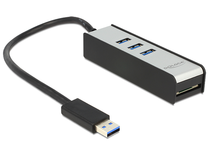 Der Delock USB 3.0 Hub für Notebook oder Tablet ist Ihr mobiler Begleiter, da er ohne Netzteil auskommt. Neben den 3 USB Anschlüssen besitzt er einen Slot für SD Speicherkarten. Der Maximalstrom von 900 mA wird auf die USB Anschlüsse und den Card Reader aufgeteilt.