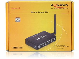 Dieser Delock Wireless LAN Router bietet Ihnen drahtlosen Internetzugang mit einer maximalen Geschwindigkeit von 150 Mb/s. Es stehen weiterhin vier Netzwerkanschlüsse zur Verfügung, um Ihre kabelgebundenen Rechner in das lokale Netzwerk einzubinden.