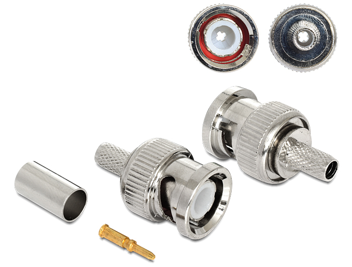 Diesen Steckverbinder von Delock können Sie an ein Koaxialkabel anbringen und mit Geräten der Hochfrequenz- / Labortechnik verbinden.