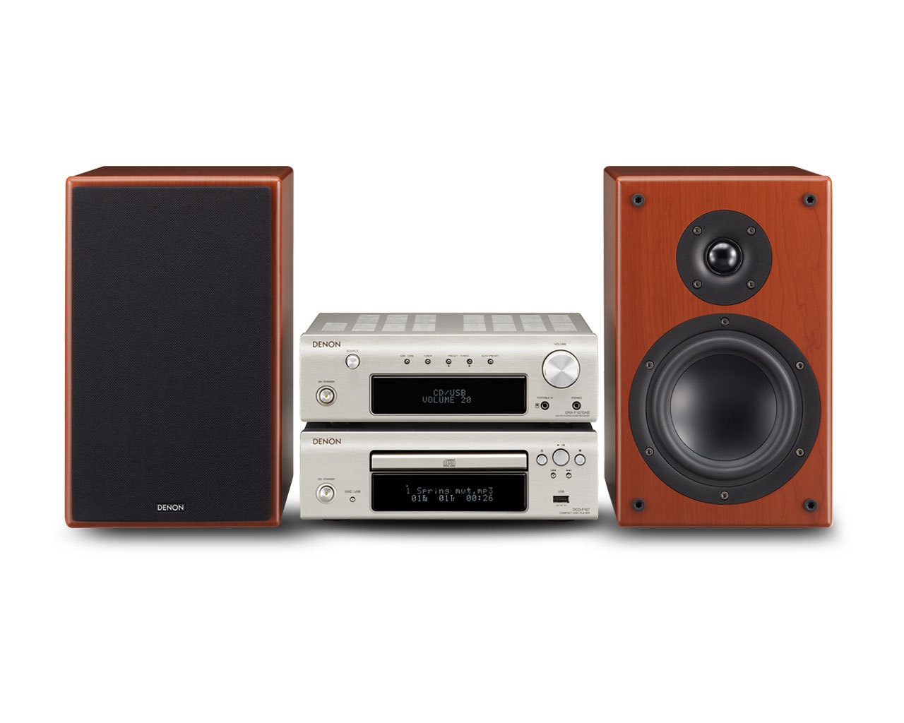 Mini-Komponenten-System D-F107, bestehend aus dem Stereo-Receiver DRA-F107, dem CD-Player DCD-F107 und den abgestimmten Lautsprechern SC-F107