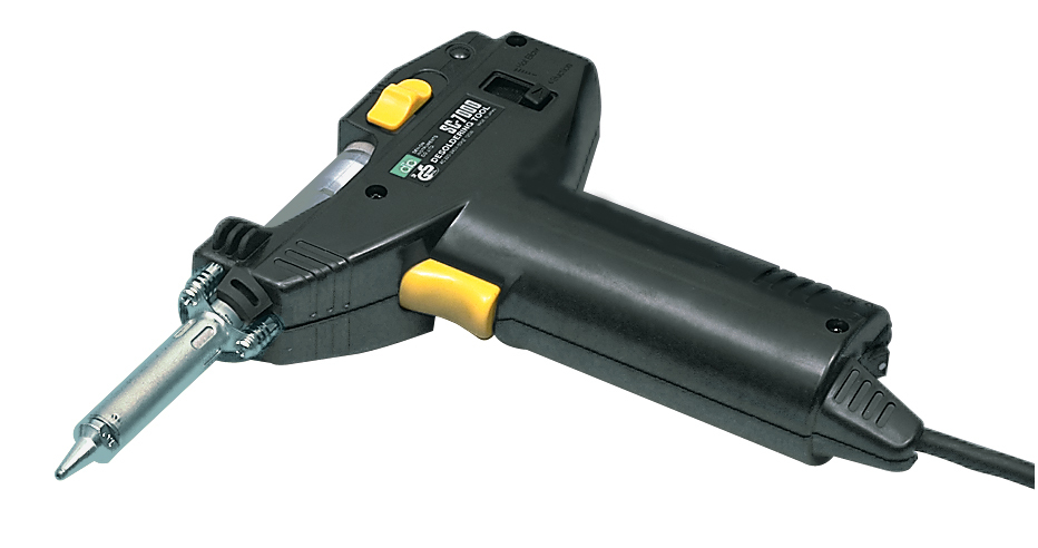 Denon desoldering gun The DN-SC7000`s unique compact multi-function desoldering tool features an integrated diaphragm vacuum pump and temperature control unit inside the hand-grip portion. For SMD component removal a simple switch to Hot Air Blower is all that is required. To prevent Electrostatic discharge (ESD) there is carbon contained in the housing. • Power consumption:120W