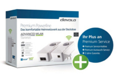 ADVANCED WLAN Weit mehr als nur 500 Mbit/s, 1x dLAN 550+ WiFi, 1x dLAN 550 duo+ Bringen Sie WLAN und Internet in jeden Raum des Hauses mit dem devolo dLAN® 550+ WiFi! Der kompakte Adapter im modernen Design wird in einer beliebigen Steckdose platziert, ein zweiter wird mit dem Router verbunden und schon steht das Internet direkt per Stromleitung zur Verfügung. Die devolo range+ Technology sorgt dabei für deutlich mehr Stabilität, Reichweite und Bandbreite im Vergleich zu herkömmlichen Adaptern. Tablets, Smartphones und Notebooks profitieren vom schnellen WLAN mit 300 Mbit/s. PCs, Smart TVs oder Spielkonsolen nutzen den Netzwerk-Anschluss des Adapters. Dank der Datenübertragung per Stromleitung überbrückt das Signal dabei mühelos bis zu 400m Kabellänge und spannt am Zielort ein neues WLAN-Signal mit maximaler Stärke auf, das nicht von Wänden, Möbeln oder Decken gedämpft wird. Die integrierte Steckdose sorgt zudem dafür, dass kein Stromanschluss verloren geht.