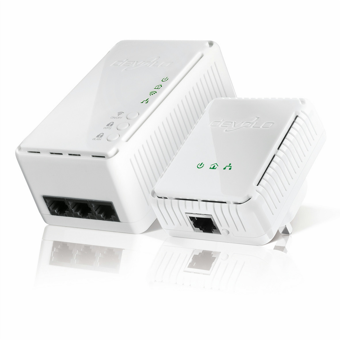 Devolo dLAN 200 AV Wireless N Starter Kit. Übertragungstechnik: Verkabelt, Hostschnittstelle: RJ-45, Schnittstelle: WLAN. Datenübertragungsrate (Maximum): 200 Mbit/s, Bandbreite: 2,4 GHz. Netzstandard: IEEE 802.11b,IEEE 802.11g,IEEE 802.11n,IEEE 802.3,IEEE 802.3u,IEEE 802.3x, Modulation: BPSK,QPSK, Maximaler Betriebsabstand: 300 m. Datenübertragungsgeschwindigkeit WLAN: 300 Mbit/s. Stromverbrauch (typisch): 7 W