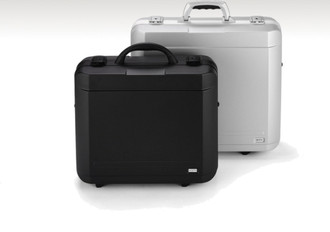 Dank der „Sandwich"-Bauweise – der Drucker befindet sich direkt unter der Notebookplattform – hat der Koffer eine sehr kompakte Form. So bleiben Notebook und Drucker zum Arbeiten fest verkabelt im Koffer. Die Papierführung verläuft platzsparend und knitterfrei unterhalb der Notebookplattform, und das Papier wird bei heruntergeklappter Notebookplattform seitlich ausgeworfen.