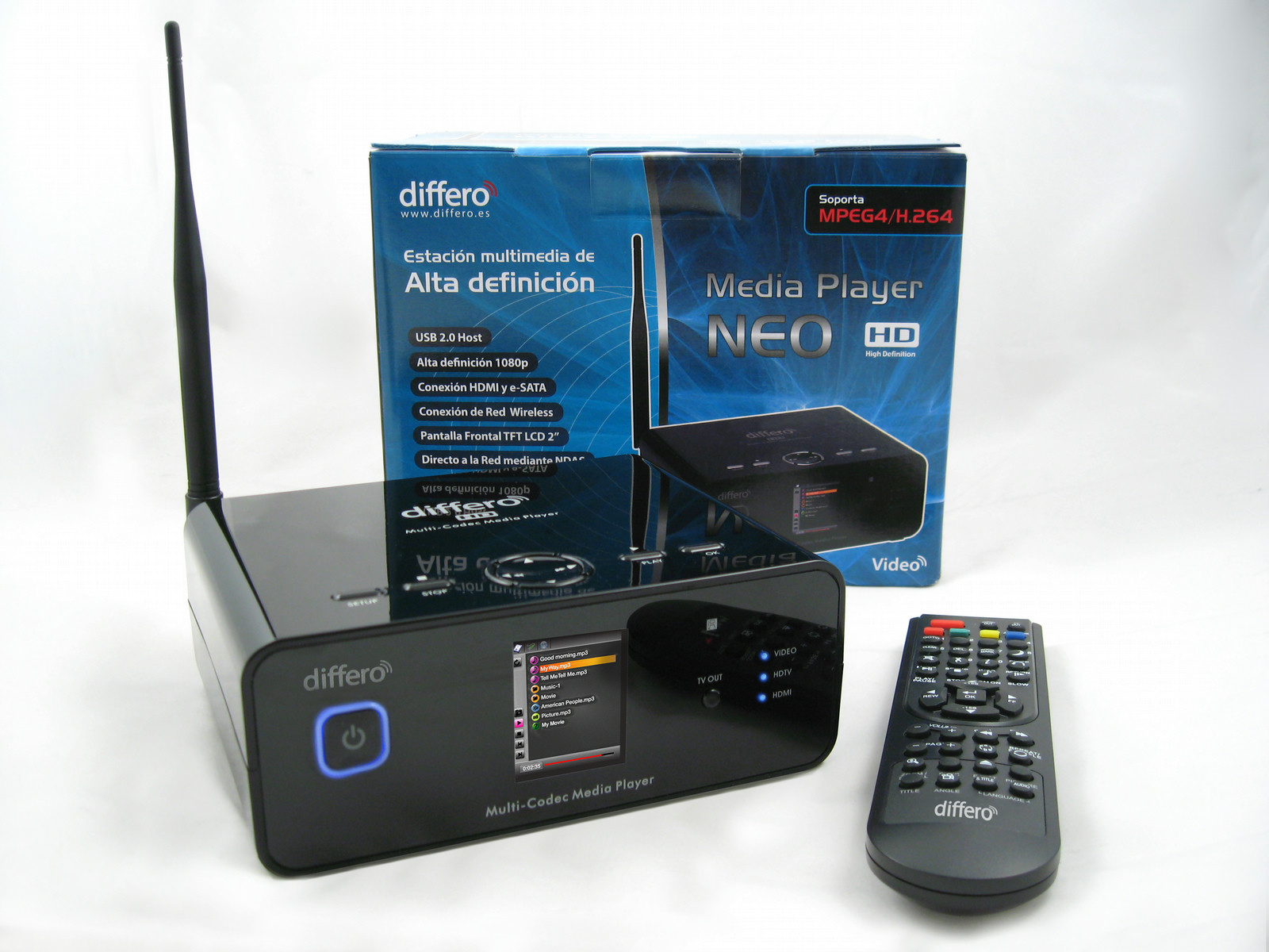 Differo Neo 500 GB. Produktfarbe: Schwarz. Unterstützte Dateisysteme: FAT32,NTFS, Festplattenkapazität: 500 GB, Festplatten-Formfaktor: 3.5 Zoll. Unterstützte Bildformate: BMP,GIF,PNG, Videokompressionsformate: H.264,Xvid, Untertitelformate unterstützt: SMI,SRT,SUB. Anzeige: LCD, Bildschirmdiagonale: 5,08 cm (2 Zoll). Breite: 145 mm, Tiefe: 95 mm, Höhe: 75 mm