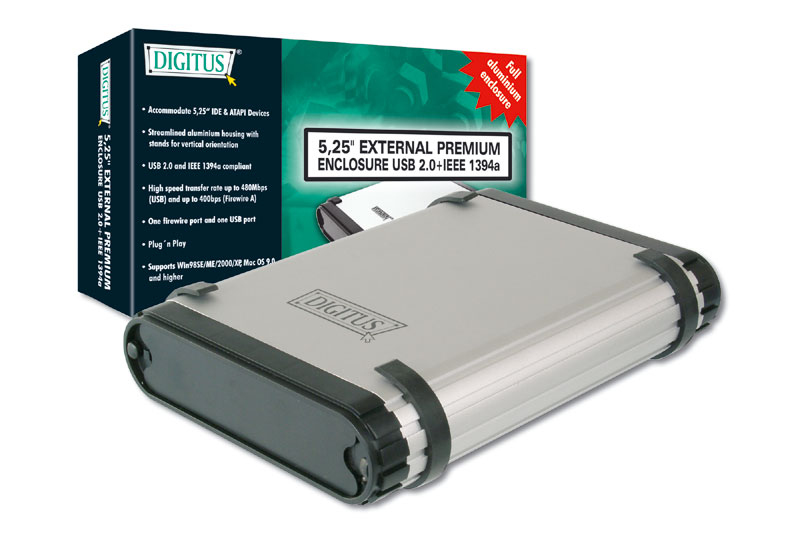 13.335 cm (5.25 ") externes Gehäuse Alu USB2.0+IEEE1394a Combo für 3,5" IDE HDD und 5,25" Optische Laufwerke