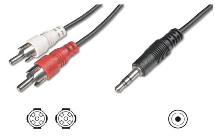 Digitus AK 243-015. Anschluss 1: 3.5mm, Anschluss 2: 2 x RCA, Geschlecht: Männlich/männlich