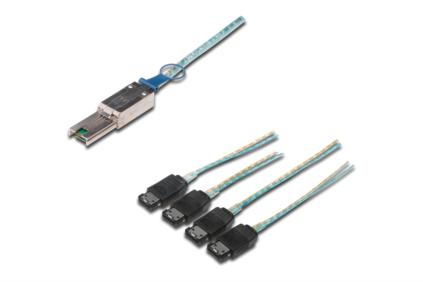 Das Kabel dient zum iexternen Anschluss von vier Serial ATA Geräten an ein SAS (Serial Attached SCSI) Gerät.