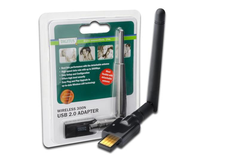 Wireless 300N USB Antennenadapter, 300Mbps, WPA2/WPA/WEP/WPS, 2.4GHz, IEEE 802.11b/g/n